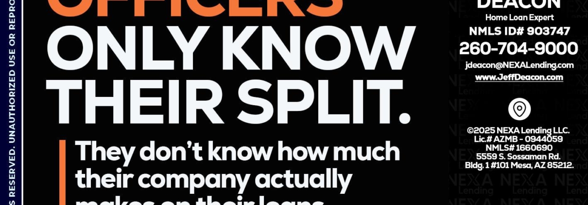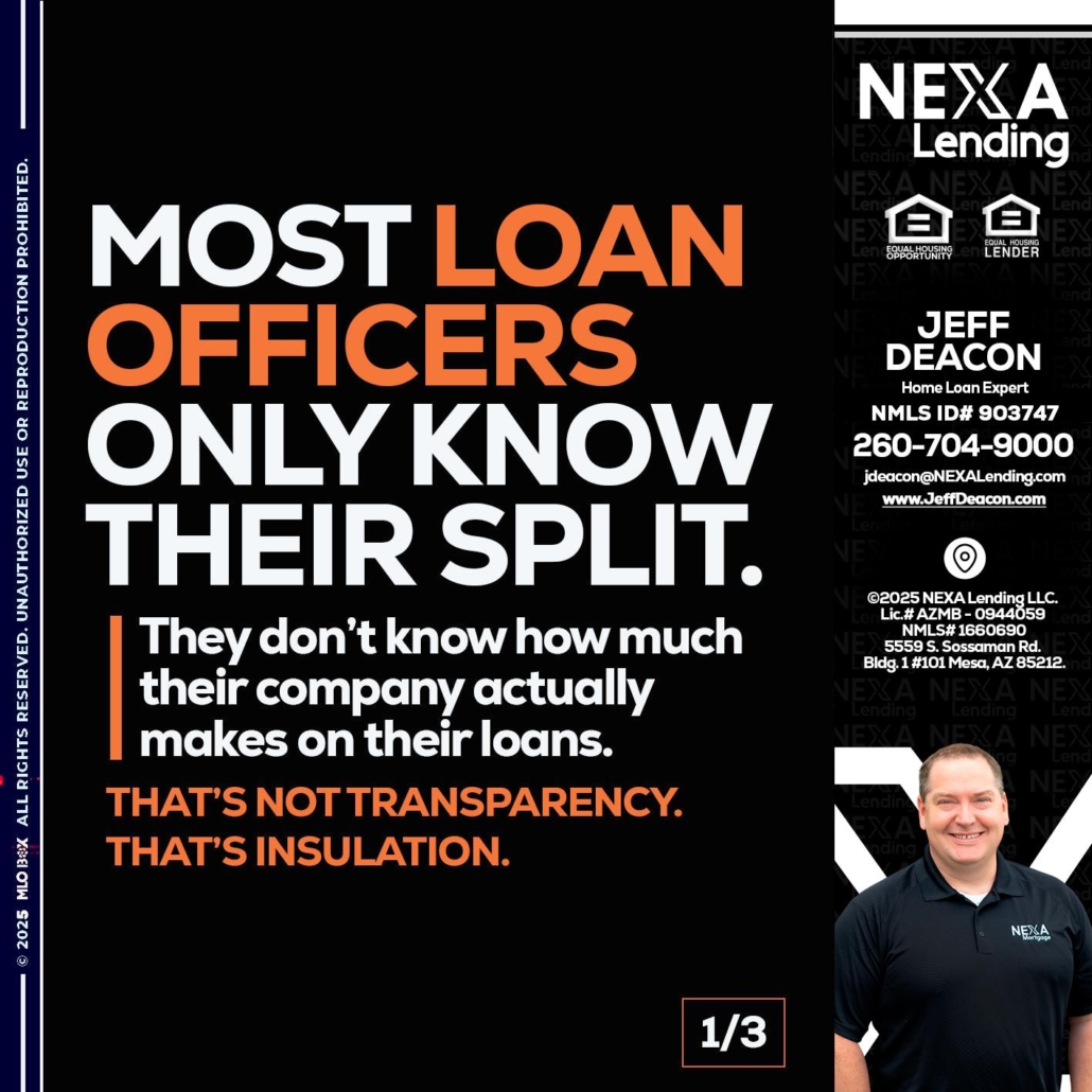 1 OF 3 - Jeff Deacon -Home Loan ExpertHi, my name is Jeff Deacon. I’m a Loan Officer with NEXA Lending LLC., offering personalized mortgage solutions, fast customized quotes, great rates and service with integrity.