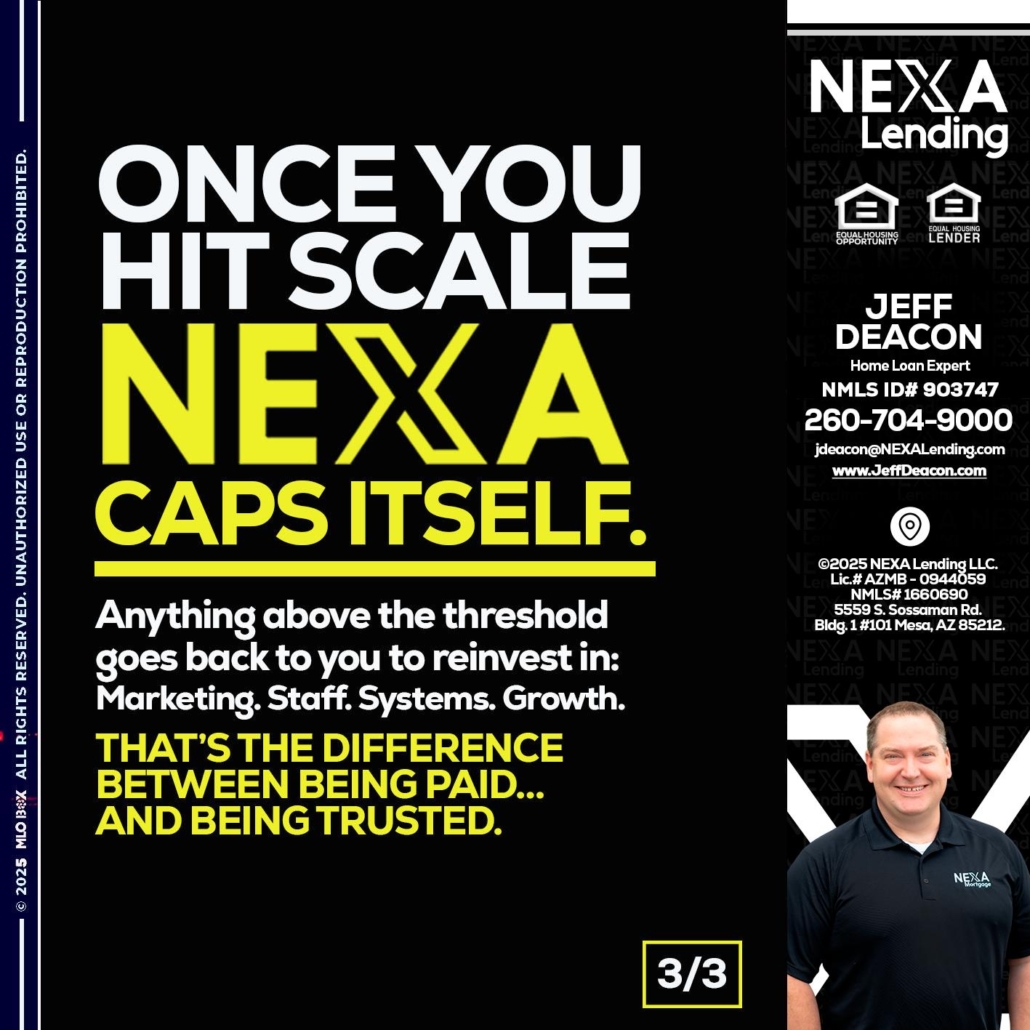 Hi, my name is Jeff Deacon. I’m a Loan Officer with NEXA Lending LLC., offering personalized mortgage solutions, fast customized quotes, great rates and service with integrity.