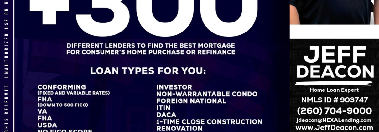 Hi, my name is Jeff Deacon. I’m a Loan Officer with NEXA Mortgage LLC., offering personalized mortgage solutions, fast customized quotes, great rates and service with integrity.