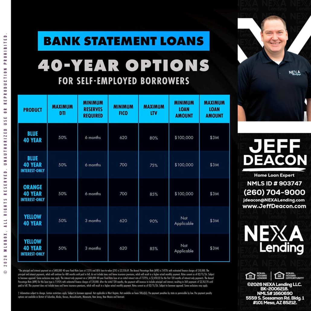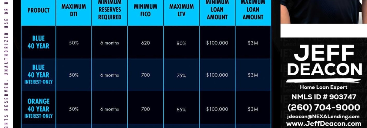 Hi, my name is Jeff Deacon. I’m a Loan Officer with NEXA Mortgage LLC., offering personalized mortgage solutions, fast customized quotes, great rates and service with integrity.