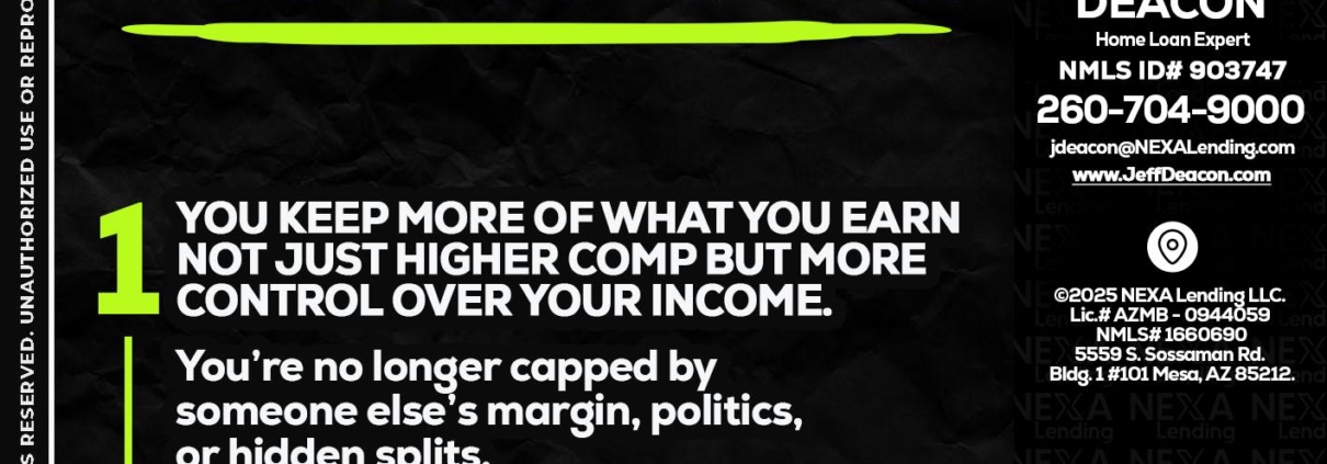 Hi, my name is Jeff Deacon. I’m a Loan Officer with NEXA Lending LLC., offering personalized mortgage solutions, fast customized quotes, great rates and service with integrity.