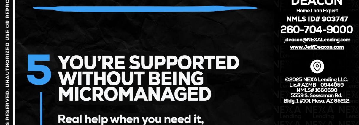 Hi, my name is Jeff Deacon. I’m a Loan Officer with NEXA Lending LLC., offering personalized mortgage solutions, fast customized quotes, great rates and service with integrity.