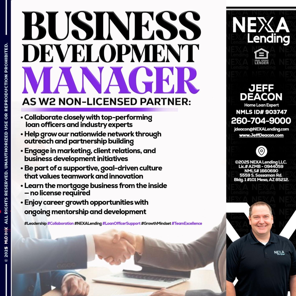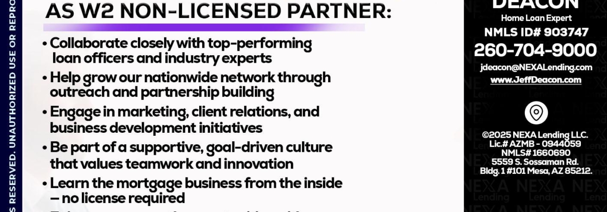 Hi, my name is Jeff Deacon. I’m a Loan Officer with NEXA Mortgage LLC., offering personalized mortgage solutions, fast customized quotes, great rates and service with integrity.