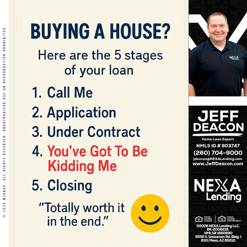 BUYING A HOUSE - Jeff Deacon -Home Loan ExpertHi, my name is Jeff Deacon. I’m a Loan Officer with NEXA Mortgage LLC., offering personalized mortgage solutions, fast customized quotes, great rates and service with integrity.