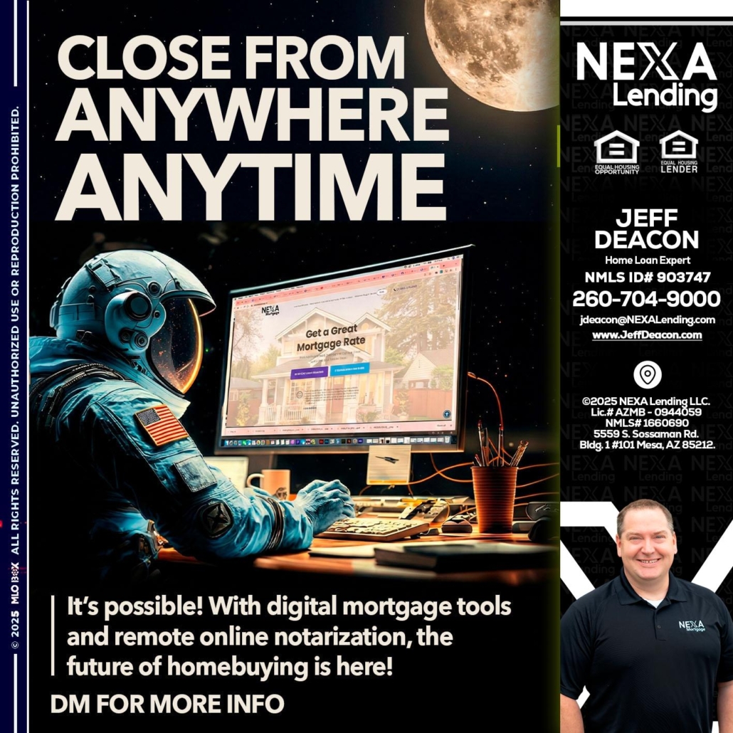Hi, my name is Jeff Deacon. I’m a Loan Officer with NEXA Lending LLC., offering personalized mortgage solutions, fast customized quotes, great rates and service with integrity.