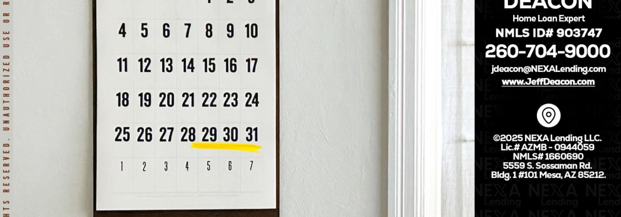FEBRUARY 29-31 - Jeff Deacon -Home Loan ExpertHi, my name is Jeff Deacon. I’m a Loan Officer with NEXA Mortgage LLC., offering personalized mortgage solutions, fast customized quotes, great rates and service with integrity.
