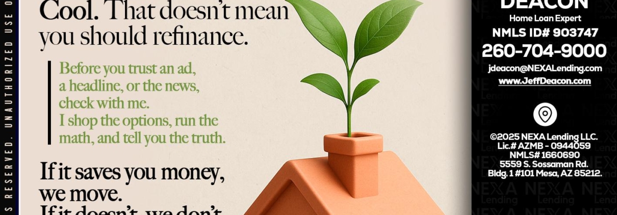 Hi, my name is Jeff Deacon. I’m a Loan Officer with NEXA Mortgage LLC., offering personalized mortgage solutions, fast customized quotes, great rates and service with integrity.