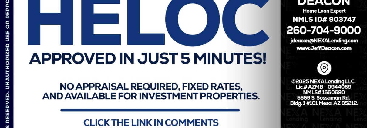 Hi, my name is Jeff Deacon. I’m a Loan Officer with NEXA Mortgage LLC., offering personalized mortgage solutions, fast customized quotes, great rates and service with integrity.