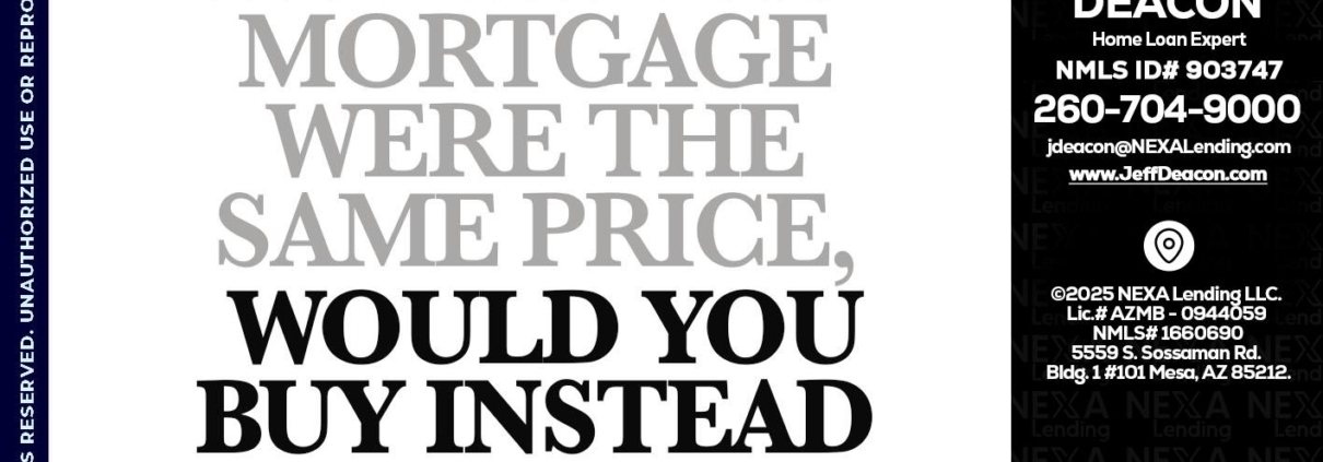 Hi, my name is Jeff Deacon. I’m a Loan Officer with NEXA Mortgage LLC., offering personalized mortgage solutions, fast customized quotes, great rates and service with integrity.