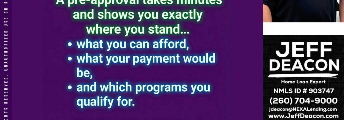 Hi, my name is Jeff Deacon. I’m a Loan Officer with NEXA Mortgage LLC., offering personalized mortgage solutions, fast customized quotes, great rates and service with integrity.
