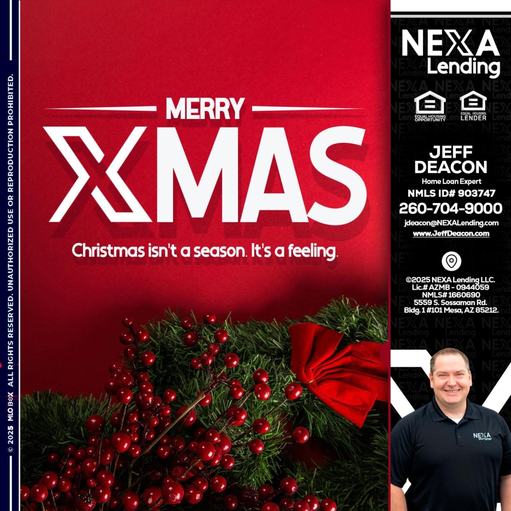 merry xmas - Jeff Deacon -Home Loan ExpertHi, my name is Jeff Deacon. I’m a Loan Officer with NEXA Lending LLC., offering personalized mortgage solutions, fast customized quotes, great rates and service with integrity.