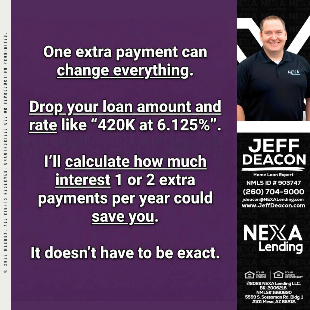 ONE EXTRA - Jeff Deacon -Home Loan ExpertHi, my name is Jeff Deacon. I’m a Loan Officer with NEXA Mortgage LLC., offering personalized mortgage solutions, fast customized quotes, great rates and service with integrity.