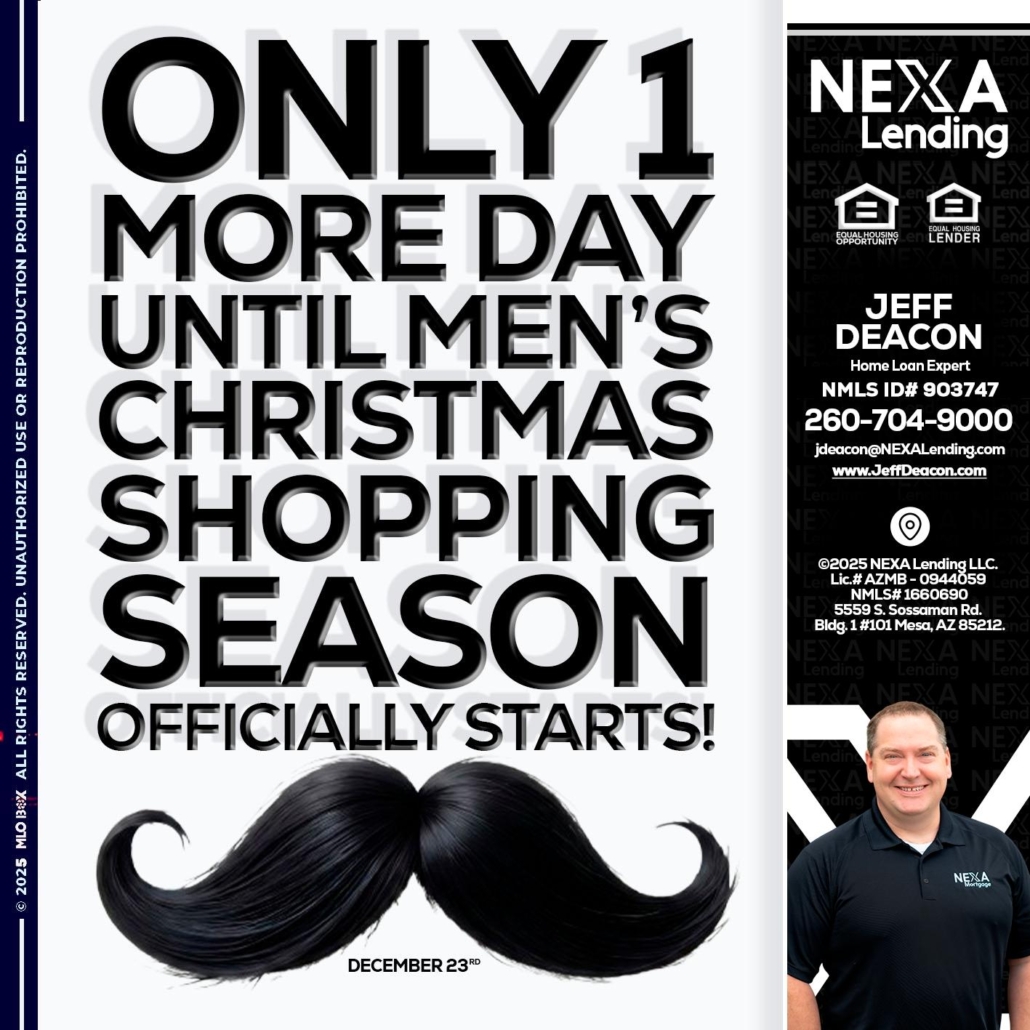 ONLY 1 DAY - Jeff Deacon -Home Loan ExpertHi, my name is Jeff Deacon. I’m a Loan Officer with NEXA Lending LLC., offering personalized mortgage solutions, fast customized quotes, great rates and service with integrity.