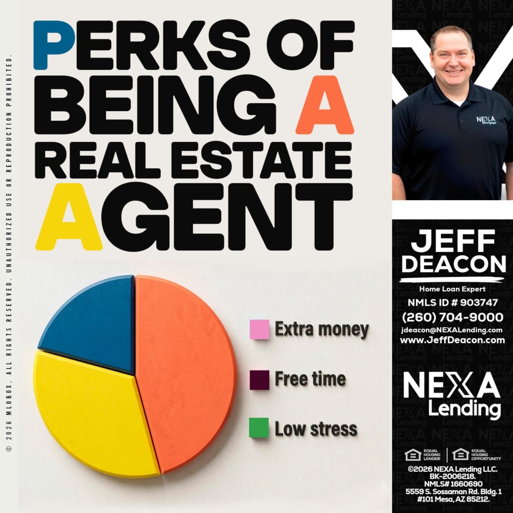 PERKS OF BEING - Jeff Deacon -Home Loan ExpertHi, my name is Jeff Deacon. I’m a Loan Officer with NEXA Mortgage LLC., offering personalized mortgage solutions, fast customized quotes, great rates and service with integrity.
