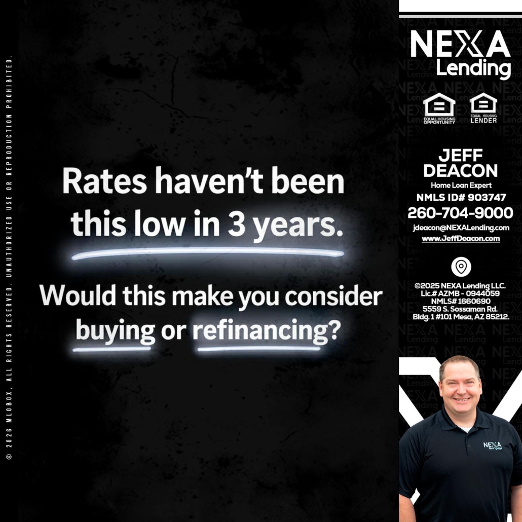 Hi, my name is Jeff Deacon. I’m a Loan Officer with NEXA Mortgage LLC., offering personalized mortgage solutions, fast customized quotes, great rates and service with integrity.