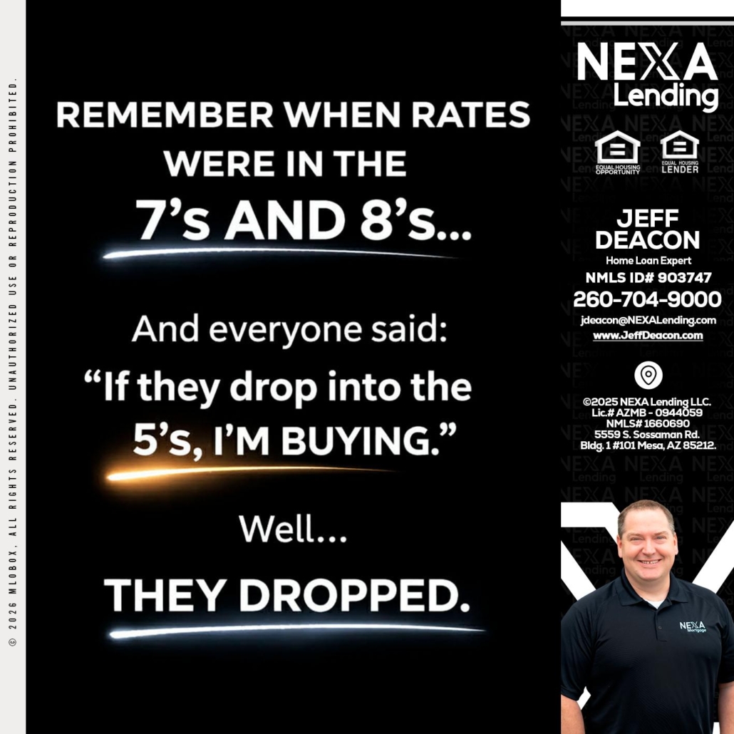 REMEMBER WHEN - Jeff Deacon -Home Loan ExpertHi, my name is Jeff Deacon. I’m a Loan Officer with NEXA Mortgage LLC., offering personalized mortgage solutions, fast customized quotes, great rates and service with integrity.