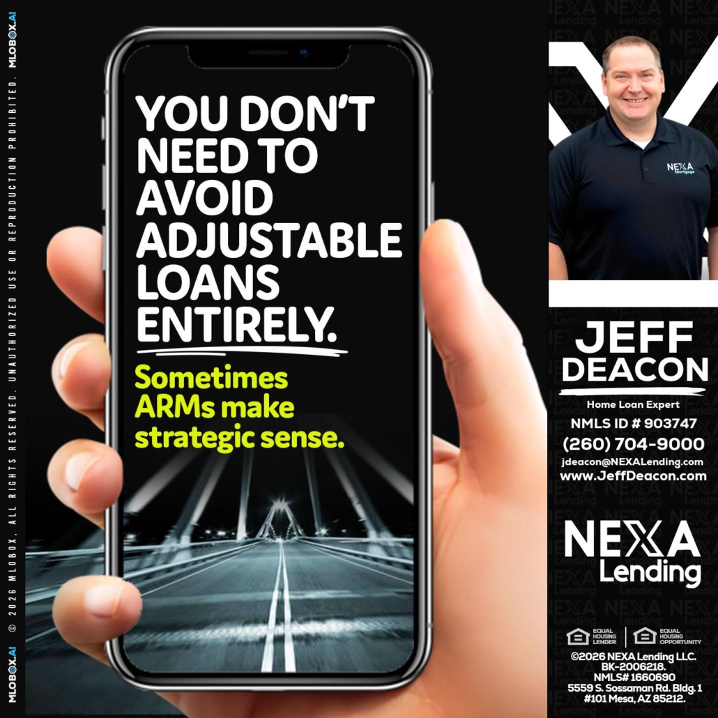 Hi, my name is Jeff Deacon. I’m a Loan Officer with NEXA Mortgage LLC., offering personalized mortgage solutions, fast customized quotes, great rates and service with integrity.